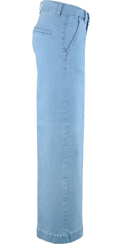 Die hellblaue Farbe der Wide Leg Pant lässt sich problemlos mit verschiedenen Oberteilen und Schuhen kombinieren. Sie ist somit ein vielseitiges Must-have für jede Garderobe, das sich für unterschiedlichste Anlässe eignet.