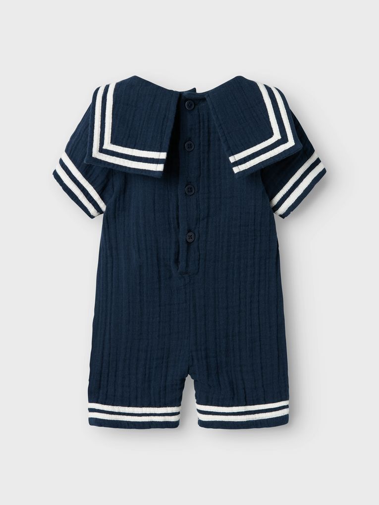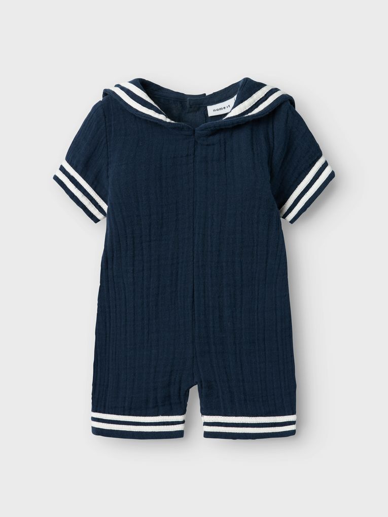 Mit diesem entzückenden Sommeroverall von Name it ist dein Baby perfekt gekleidet für warme Tage und spezielle Momente. Hol dir jetzt diesen zeitlosen Marinelook und genieße die Kombination aus Stil, Komfort und Qualität!