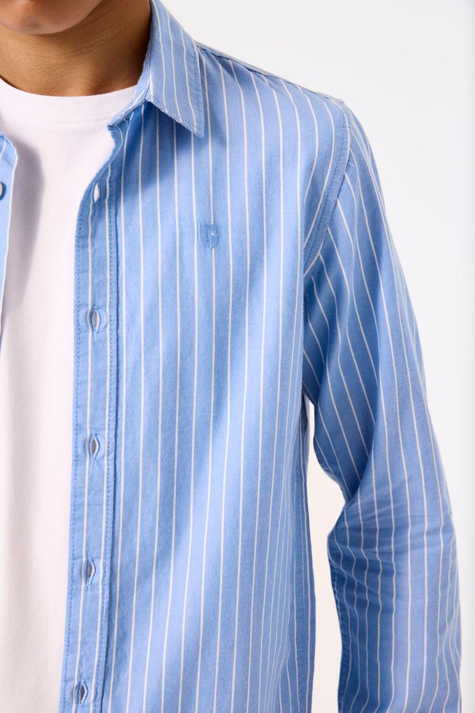 Das Hemd überzeugt mit einem eleganten Streifenmuster in Hellblau und Weiß. Der klassische Kragen und die durchgehende Knopfleiste verleihen dem Hemd eine schicke Optik, die sowohl lässig als auch elegant kombiniert werden kann.