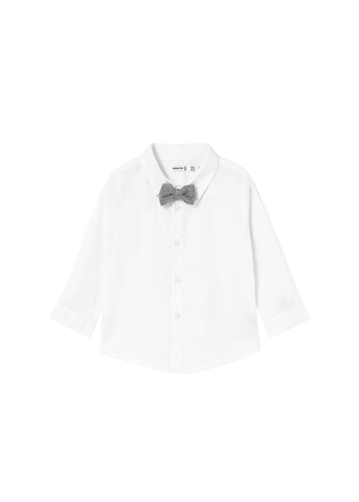 Das weiße Hemd mit langen Ärmeln bildet die zeitlose Basis dieses Outfits. Es ist klassisch geschnitten, angenehm zu tragen und passt perfekt zur eleganten Kombination aus Hose, Weste und Fliege.