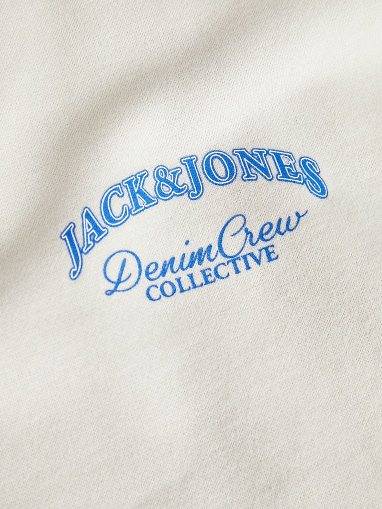 Dieser Hoodie hebt sich durch einen auffälligen Rückenprint hervor, der das Markenlogo von Jack & Jones und den Schriftzug "Denim Crew Collective" zeigt. Die Vorderseite ist schlicht gehalten, während die Kapuze dem Look eine sportliche Note verleiht.