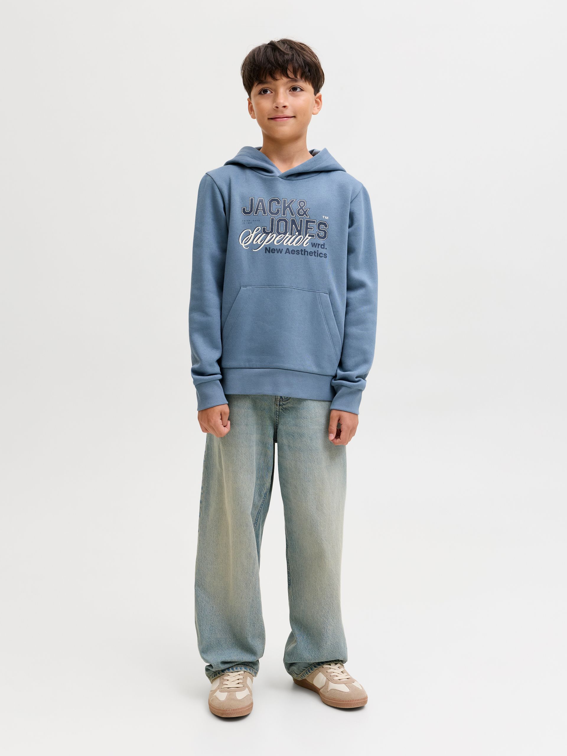 Keine Garderobe ist komplett ohne einige bewährte Basics wie Sweatpants. Ungebürsteter Sweatstoff hat eine glatte Oberfläche und Schlaufen an der Innenseite für ein angenehmes Tragegefühl. Entdecke die aufregende Welt von Jack and Jones Junior, in der Mode durch jugendliche Energie und lebhaften Charme zum Leben erweckt wird. Unsere Kollektionen bieten eine Mischung aus neuen, trendigen Designs, die Jungen im Alter von 8-16 Jahren ansprechen. Tauche in hochwertige und bequeme Styles ein, die speziell für junge Fashion-Liebhaber entwickelt wurden. Bei Jack and Jones Junior interpretieren wir Mode für Jungs im Alter von 8 bis 16 neu, indem wir coole Passformen und moderne Styles kombinieren und dabei immer wieder Elemente aus der Erwachsenenmode einfließen lassen..