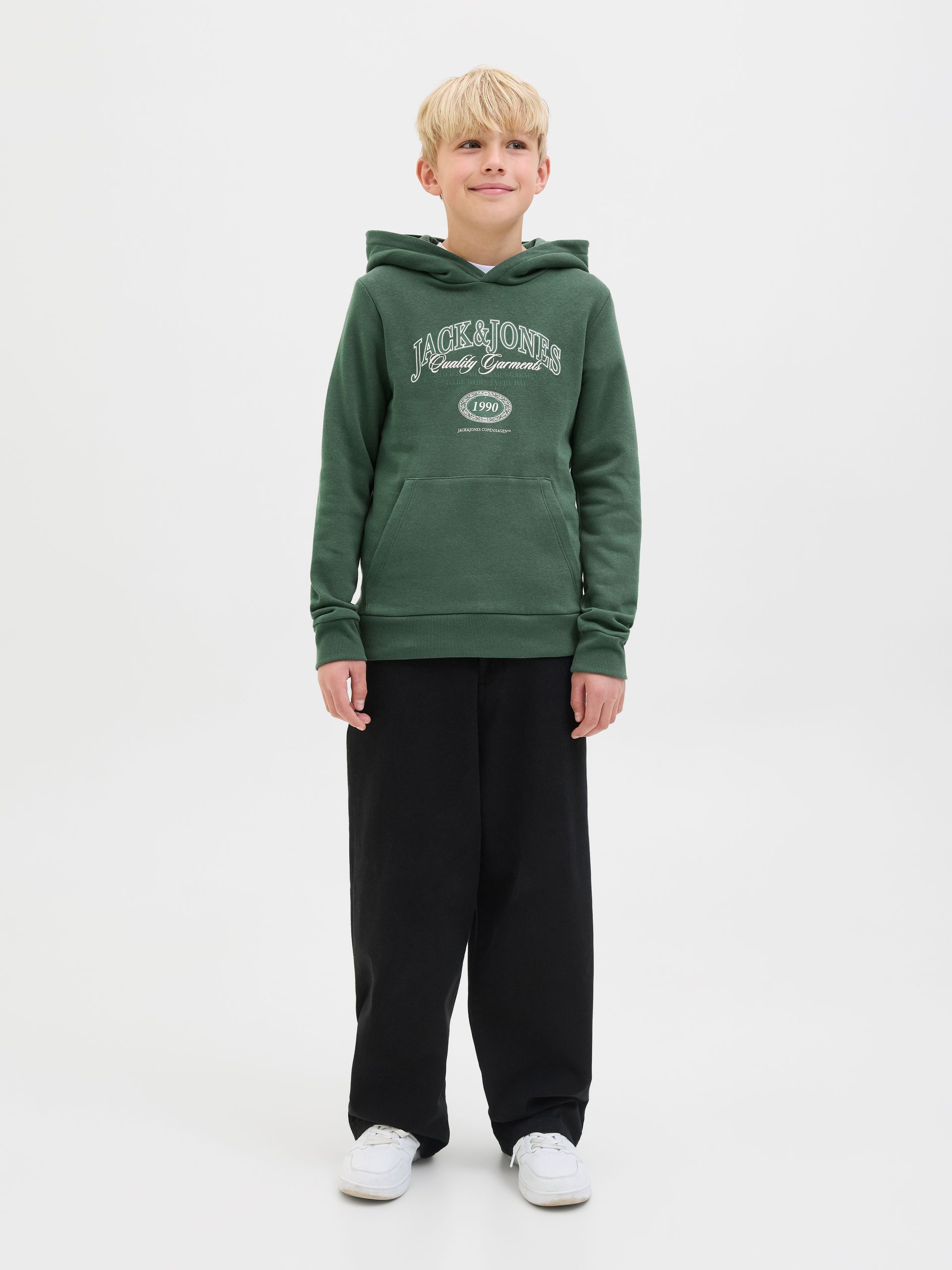Der Hoodie ist ideal für Jungen im Alter von 8 bis 16 Jahren, die einen sportlich-trendigen Stil lieben und gleichzeitig auf Komfort nicht verzichten wollen. Er passt perfekt zu den urbanen Looks von Jack & Jones Junior und bringt jugendliche Energie in jeden Tag.