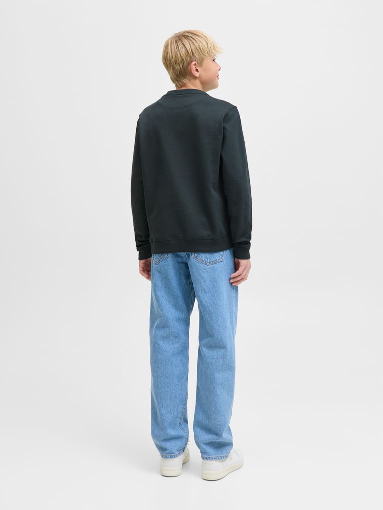 Kreiere ein cooles Alltagsoutfit oder einen lässigen Wochenendlook mit einem basic Sweat-Style. Ungebürsteter Sweatstoff hat eine glatte Oberfläche und Schlaufen an der Innenseite für ein angenehmes Tragegefühl. Entdecke die aufregende Welt von Jack and Jones Junior, in der Mode durch jugendliche Energie und lebhaften Charme zum Leben erweckt wird. Unsere Kollektionen bieten eine Mischung aus neuen, trendigen Designs, die Jungen im Alter von 8-16 Jahren ansprechen. Tauche in hochwertige und bequeme Styles ein, die speziell für junge Fashion-Liebhaber entwickelt wurden. Bei Jack and Jones Junior interpretieren wir Mode für Jungs im Alter von 8 bis 16 neu, indem wir coole Passformen und moderne Styles kombinieren und dabei immer wieder Elemente aus der Erwachsenenmode einfließen lassen.