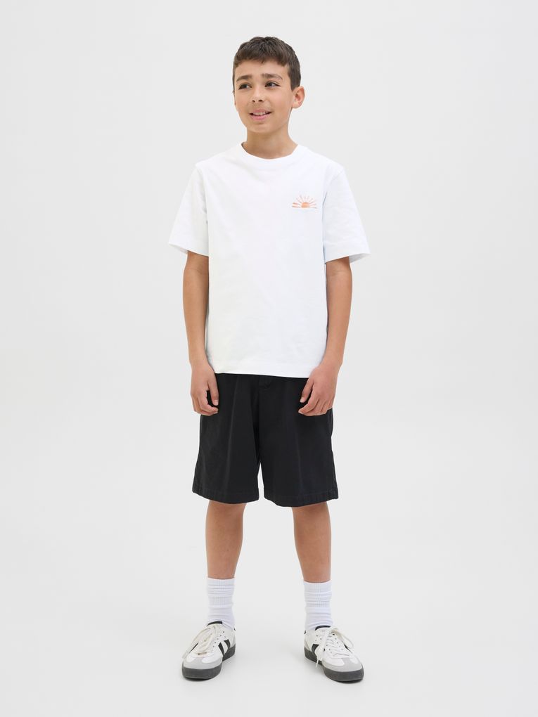Nichts ist so unkompliziert wie ein T-Shirt. Es passt einfach zu allem in deinem Kleiderschrank. Gekämmtes Jerseygewebe ist dehnbar, fühlt sich weich an und ist perfekt für den Alltag. Entdecke die aufregende Welt von Jack and Jones Junior, in der Mode durch jugendliche Energie und lebhaften Charme zum Leben erweckt wird. Unsere Kollektionen bieten eine Mischung aus neuen, trendigen Designs, die Jungen im Alter von 8-16 Jahren ansprechen. Tauche in hochwertige und bequeme Styles ein, die speziell für junge Fashion-Liebhaber entwickelt wurden. Bei Jack and Jones Junior interpretieren wir Mode für Jungs im Alter von 8 bis 16 neu, indem wir coole Passformen und moderne Styles kombinieren und dabei immer wieder Elemente aus der Erwachsenenmode einfließen lassen.