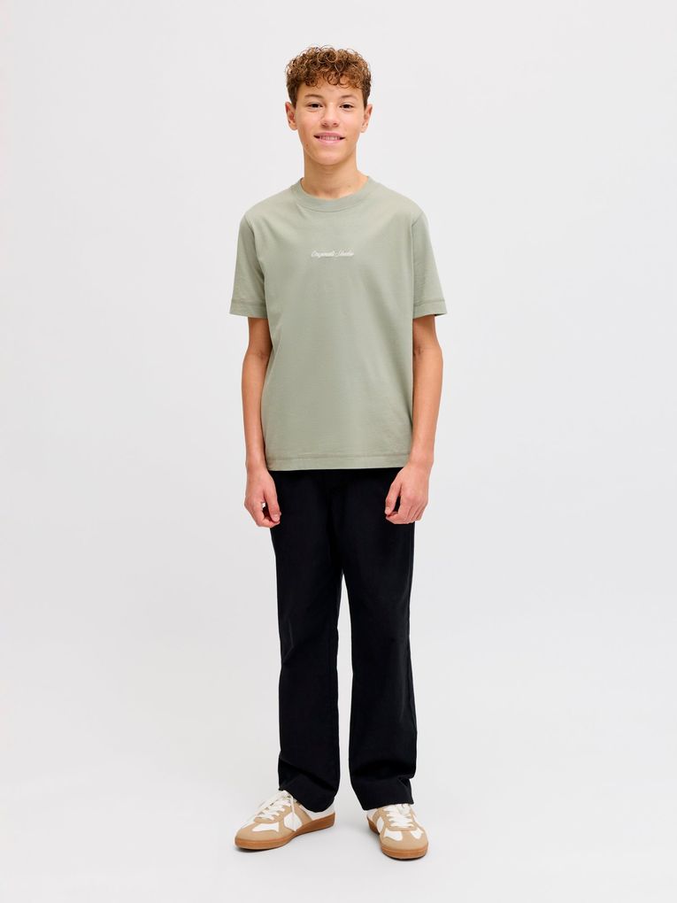 Nichts ist so unkompliziert wie ein T-Shirt. Es passt einfach zu allem in deinem Kleiderschrank. Jersey ist ein leichter und dehnbarer Stoff mit hohem Tragekomfort. Entdecke die aufregende Welt von Jack and Jones Junior, in der Mode durch jugendliche Energie und lebhaften Charme zum Leben erweckt wird. Unsere Kollektionen bieten eine Mischung aus neuen, trendigen Designs, die Jungen im Alter von 8-16 Jahren ansprechen. Tauche in hochwertige und bequeme Styles ein, die speziell für junge Fashion-Liebhaber entwickelt wurden. Bei Jack and Jones Junior interpretieren wir Mode für Jungs im Alter von 8 bis 16 neu, indem wir coole Passformen und moderne Styles kombinieren und dabei immer wieder Elemente aus der Erwachsenenmode einfließen lassen.