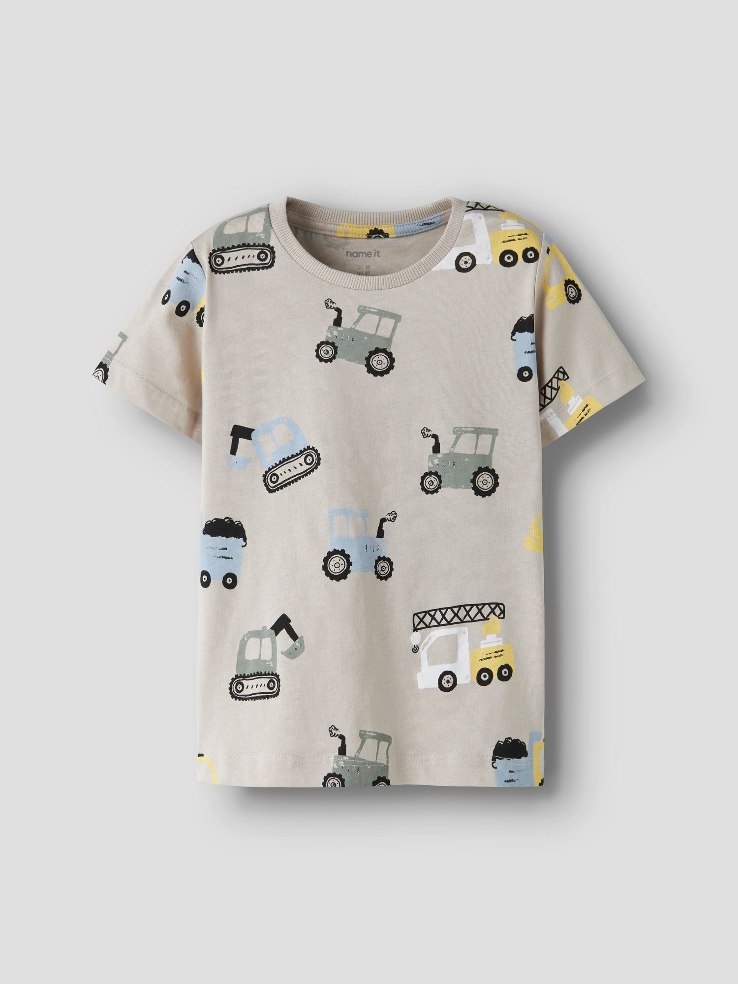 - Baufahrzeug-Motive als frontaler Print und Allover-Design