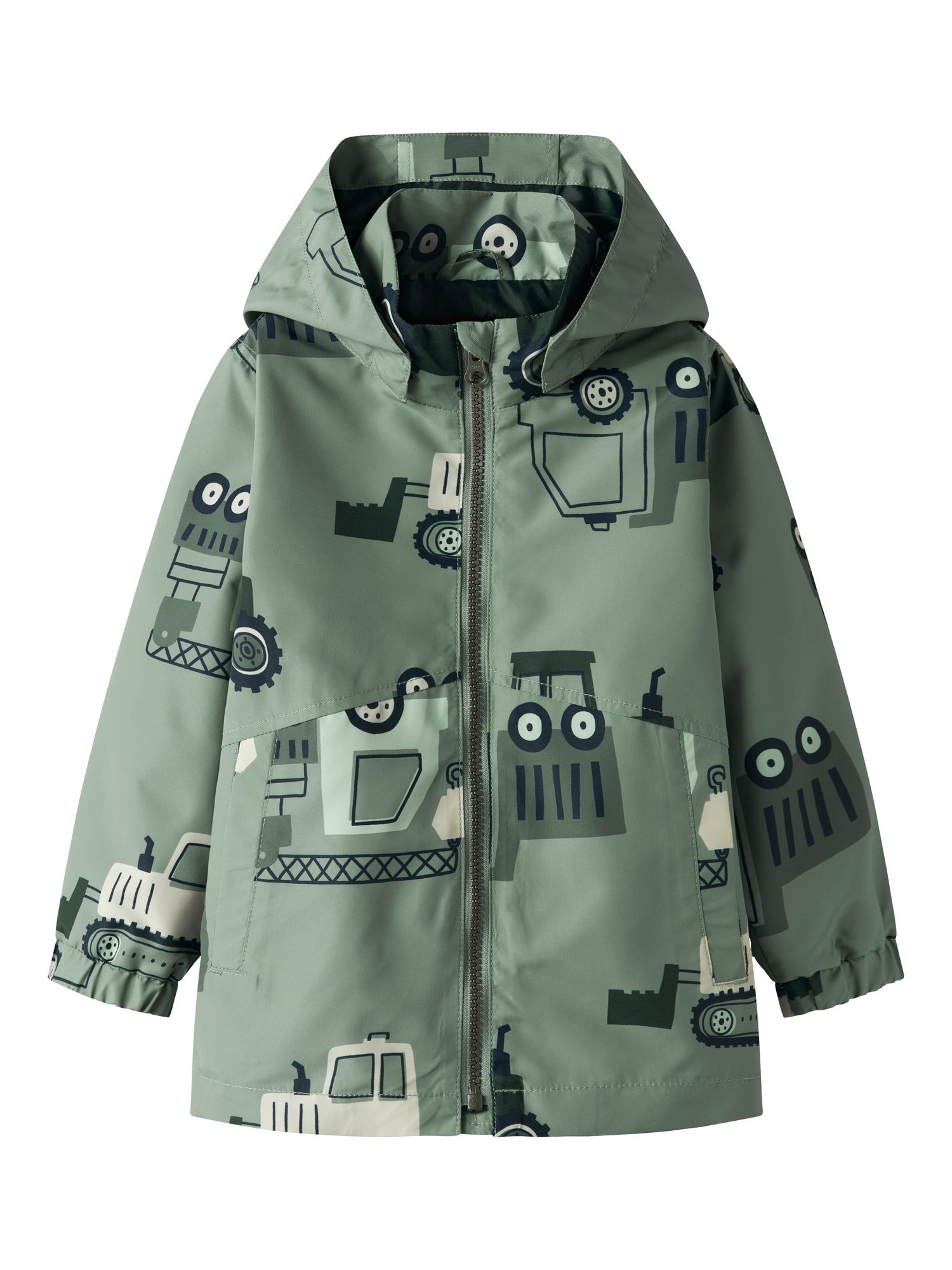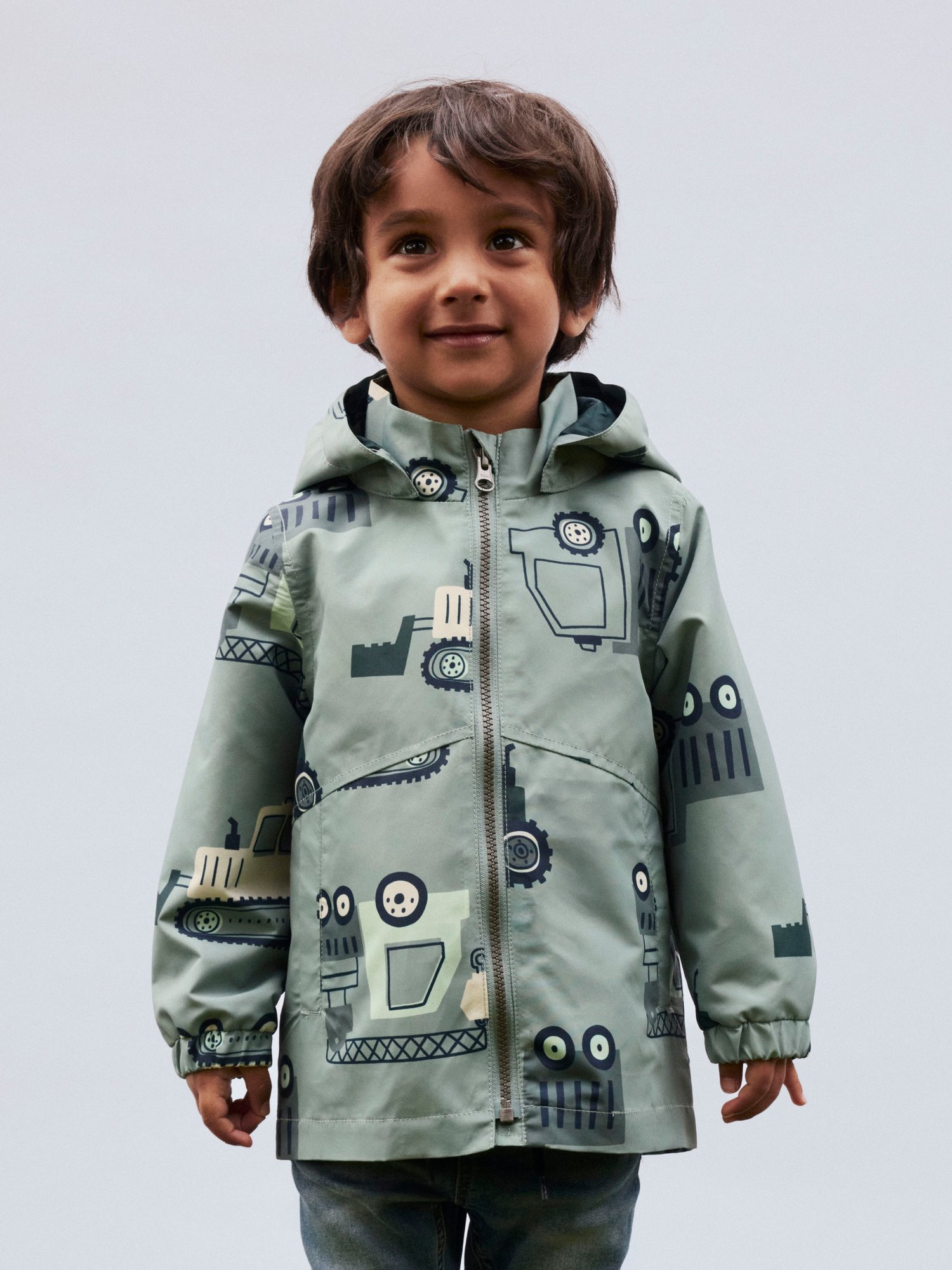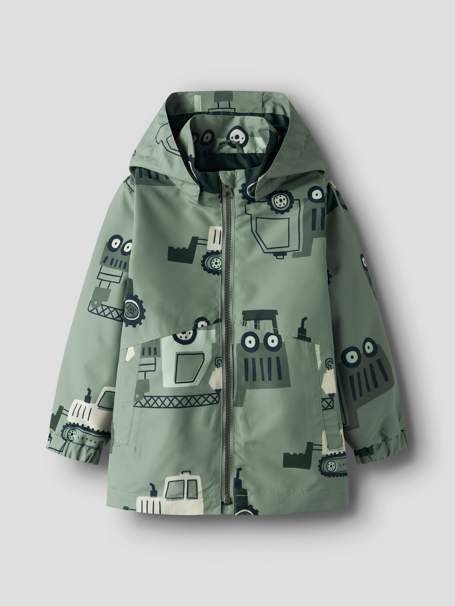 Diese Name it Jacke bringt praktischen Schutz und frischen Style in die Garderobe deines Kindes. Der glatte Außenstoff fühlt sich leicht an und sorgt zusammen mit der abnehmbaren Kapuze und dem durchgehenden Reißverschluss für unkomplizierten Schutz an wechselhaften Tagen. Das markante Allover-Motiv mit Baumaschinen macht die Jacke zu einem echten Hingucker.