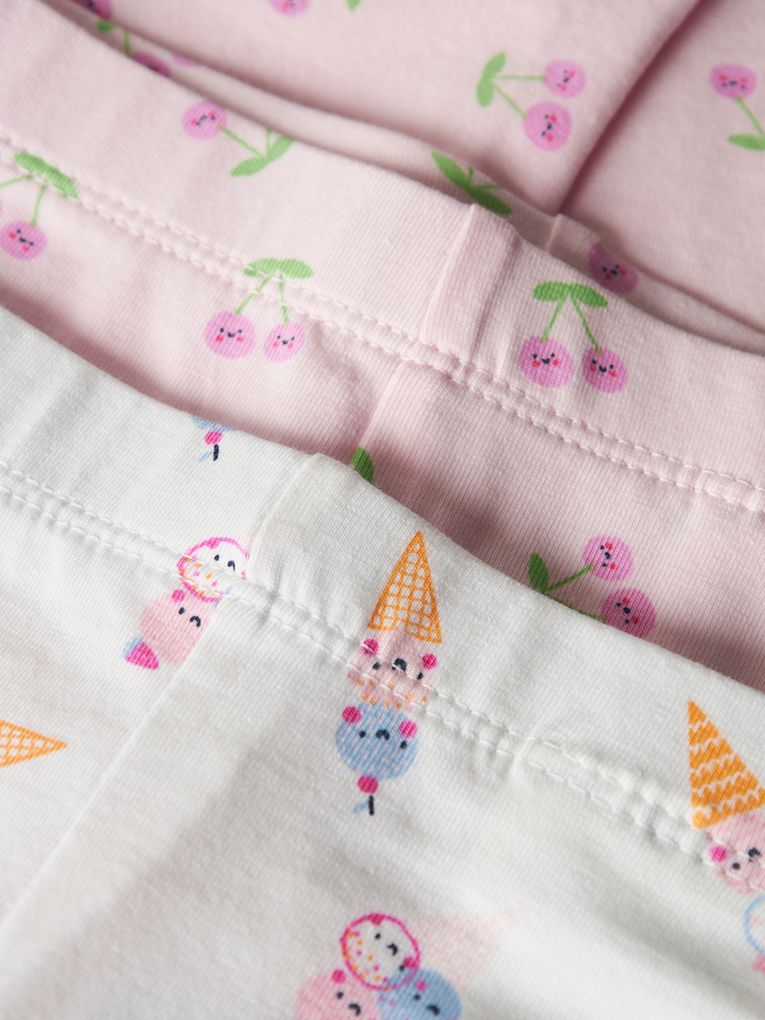 - Fröhliche Capri-Leggings mit Eiscreme- und Blumenmotiven, ideal für Kindergarten und Freizeitaktivitäten.