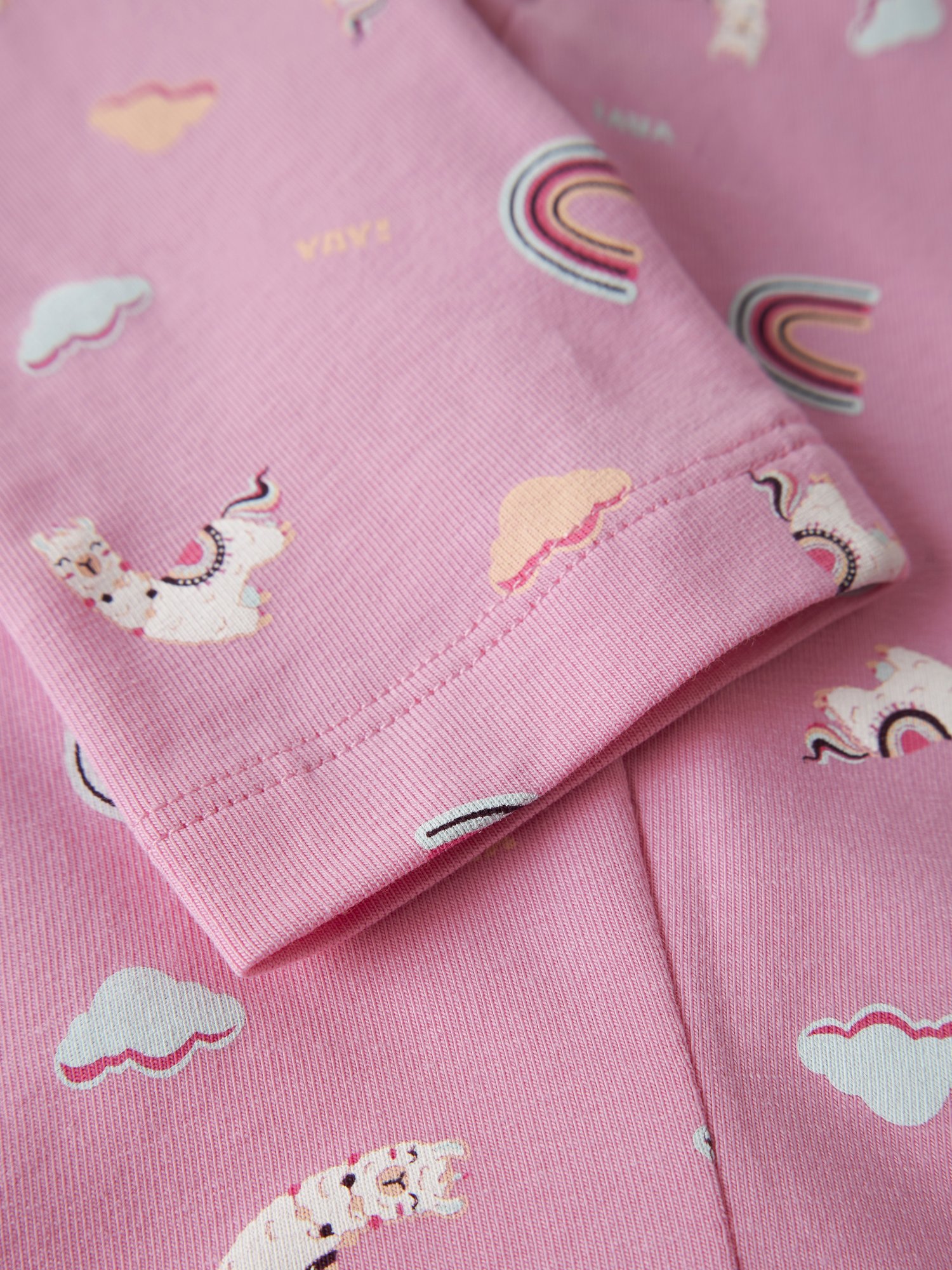 - Fröhlicher Allover-Print mit Regenbögen, Wolken und kleinen Tiermotiven