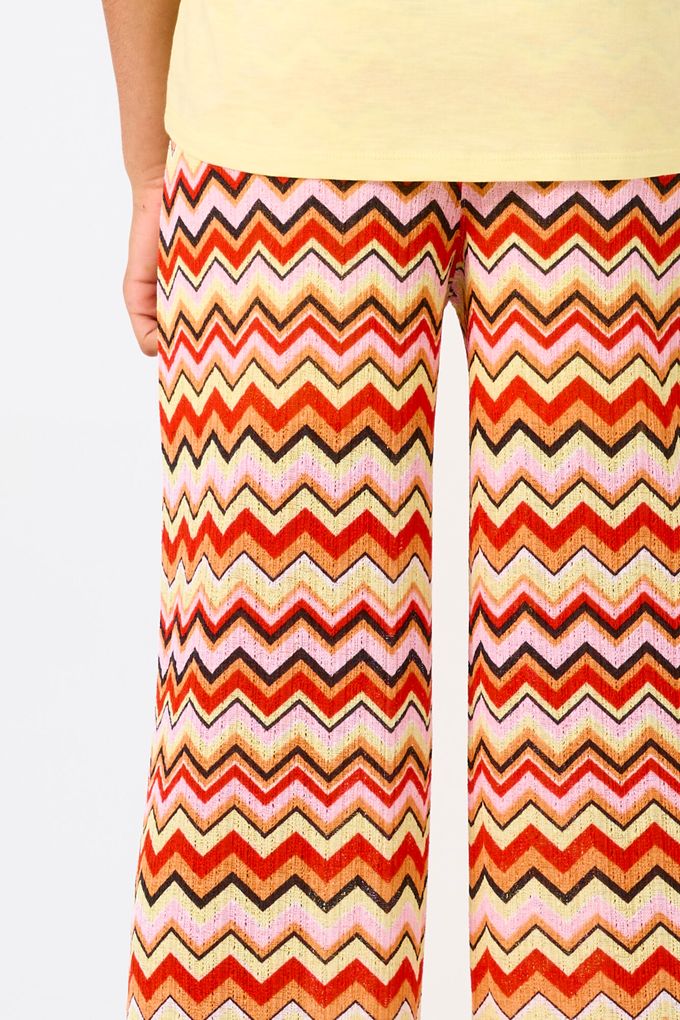 - Auffälliges Chevron-Muster und weite Hosenbeine für einen modischen Auftritt.