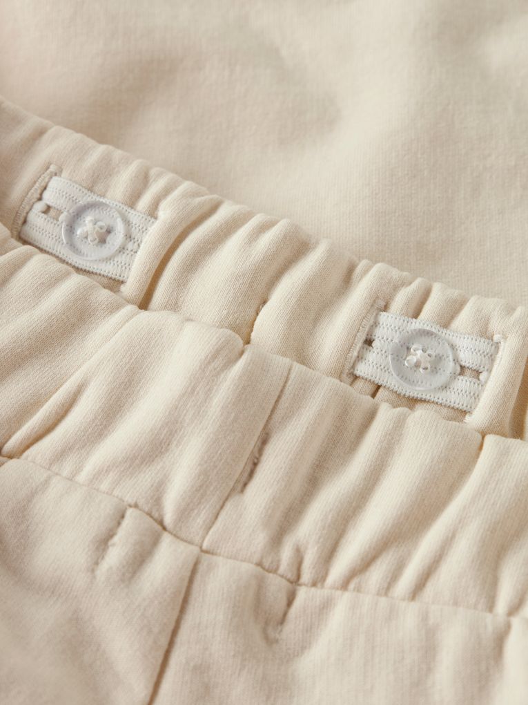 - Bundweite verstellbar: Knopf und Gummizug im Bund zur Regulierung der Weite