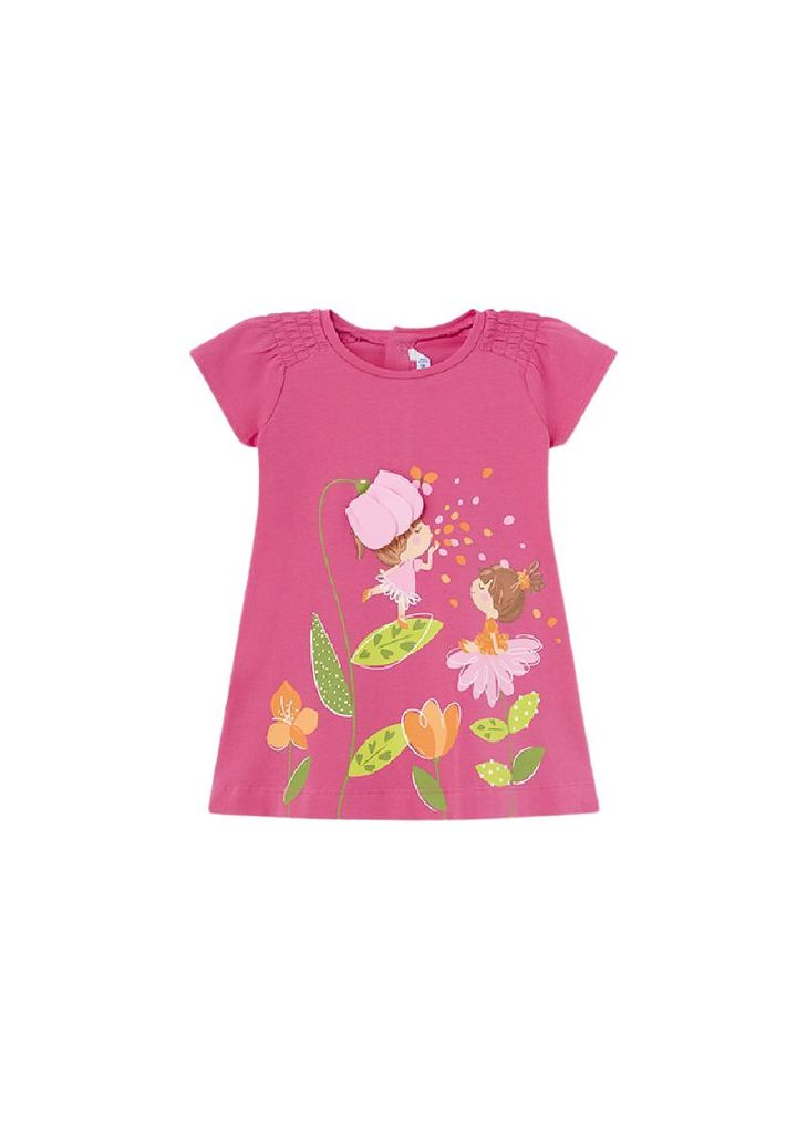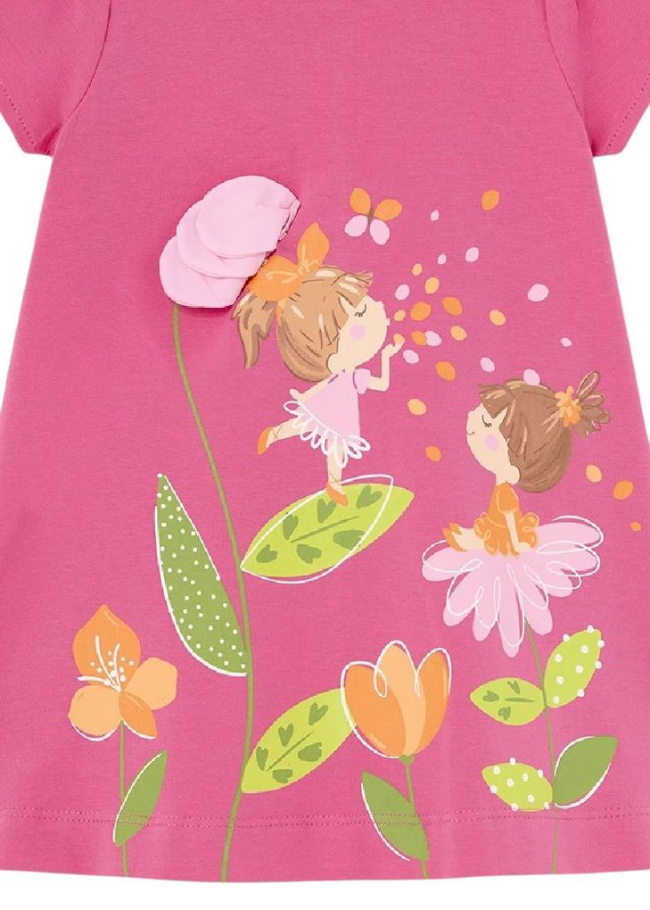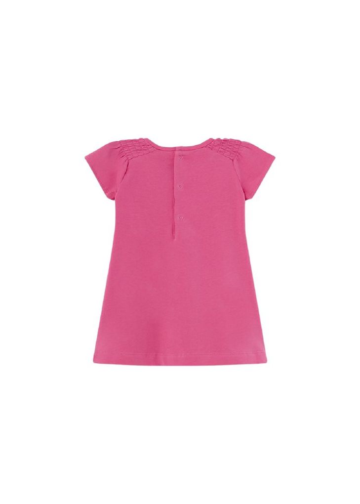 Es bietet mit seinem knielangen Schnitt in A-Linie maximalen Komfort und Bewegungsfreiheit. Die gesmokten kurzen Ärmel und der Rundhalsausschnitt geben dem Kleid eine klassische Note, während der Druckknopfverschluss am Rücken das An- und Ausziehen erleichtert. Das magentafarbene Design und der niedliche Frontprint verleihen dem Kleid eine fröhliche und verspielte Ausstrahlung.