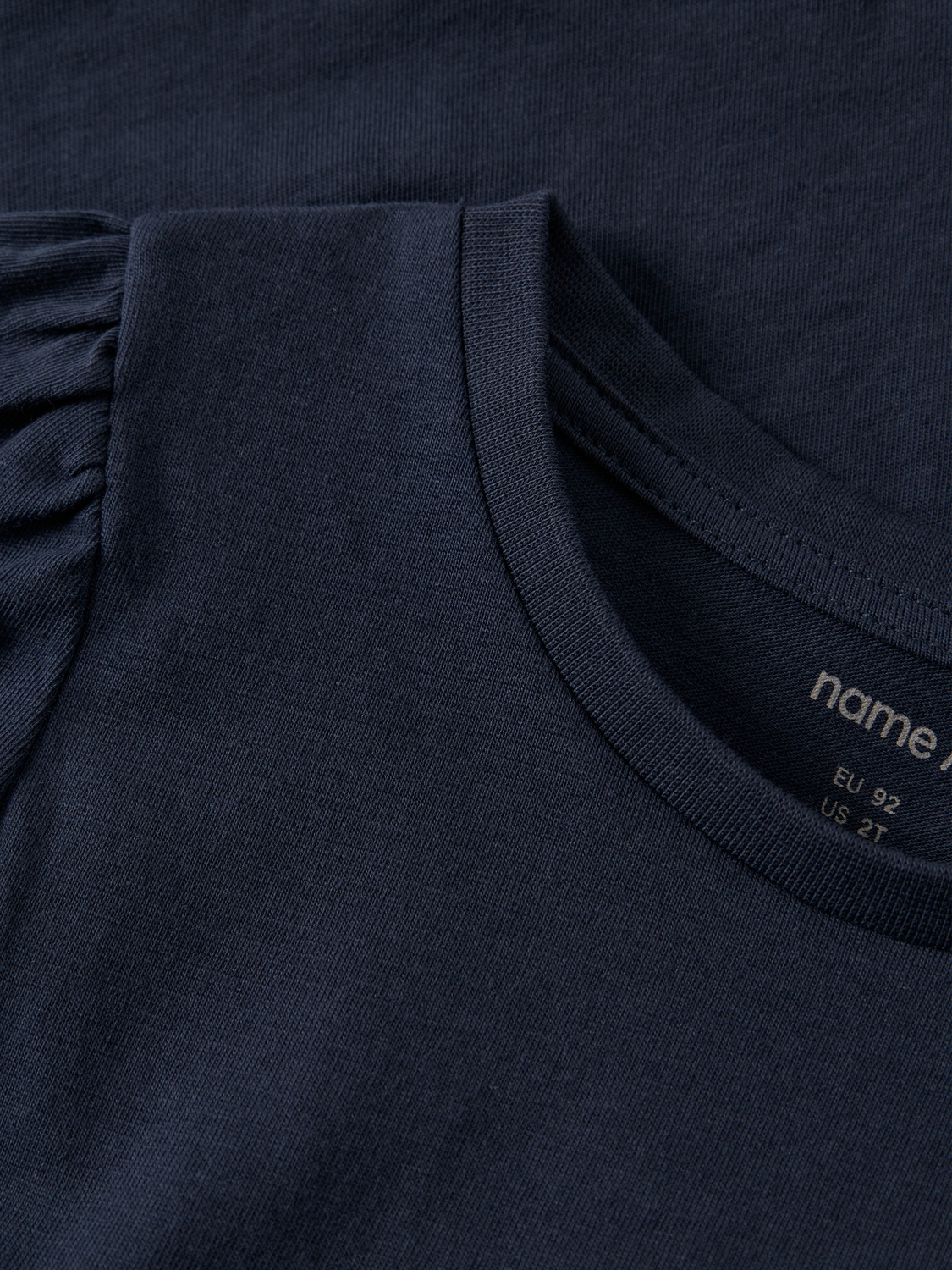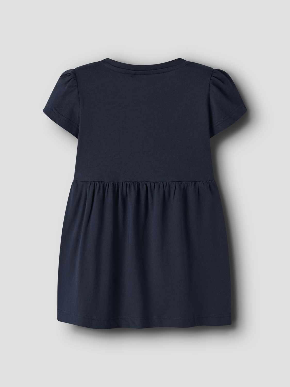 Der Stoff fühlt sich weich und anschmiegsam an und dehnt sich gut mit, so dass dein Kind sich frei bewegen kann. Der Rundhalsausschnitt sitzt klassisch und bequem. Dank der elastischen Struktur liegt das Kleid weder einengend noch zu locker – ideal für aktive Tage voller Spiel und Bewegung.
