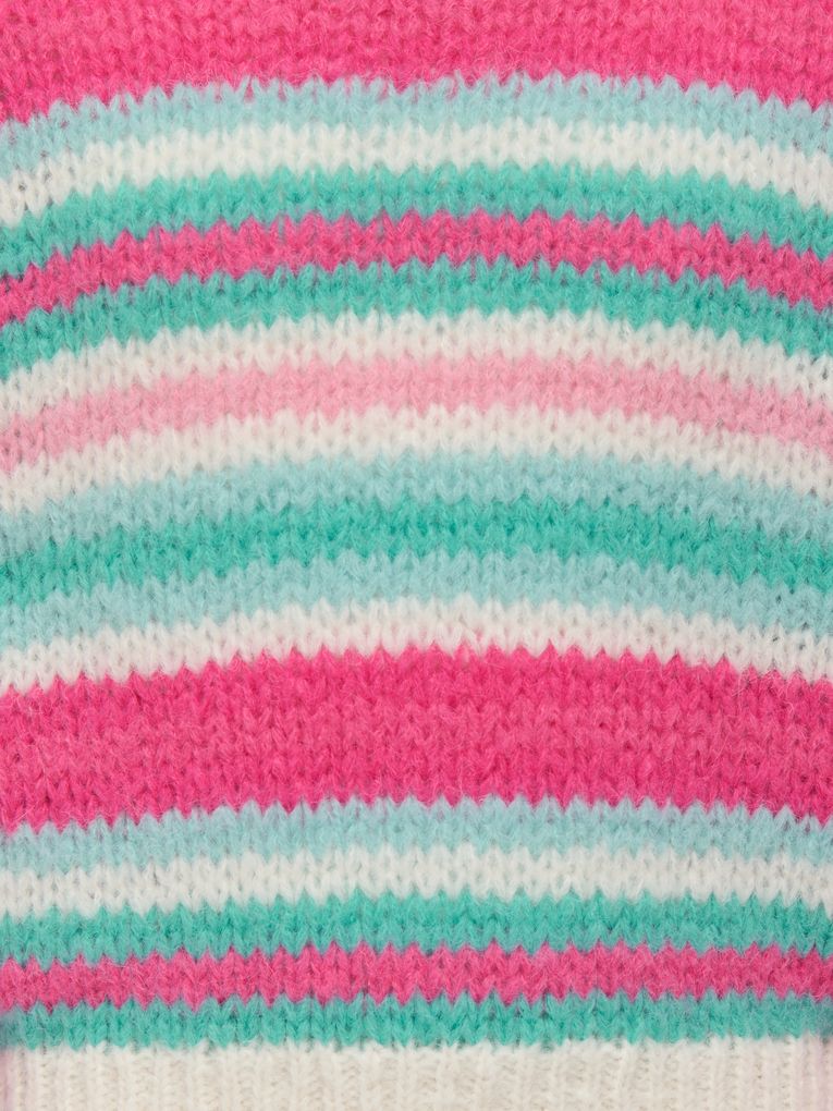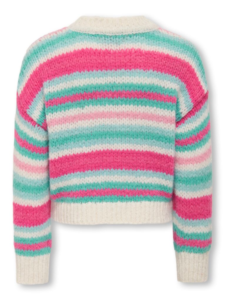 Dieser farbenfrohe Pullover von Kids Only ist ein echtes Highlight für modebewusste Mädchen und Teenager. Das auffällige Streifenmuster bringt sofort frischen Wind in jeden Look – perfekt für Schule, Freizeit und gemütliche Nachmittage. Die weiche Haptik sorgt dabei für ein angenehmes Tragegefühl, während die kräftigen Farben den Pullover zum Lieblingsstück machen.