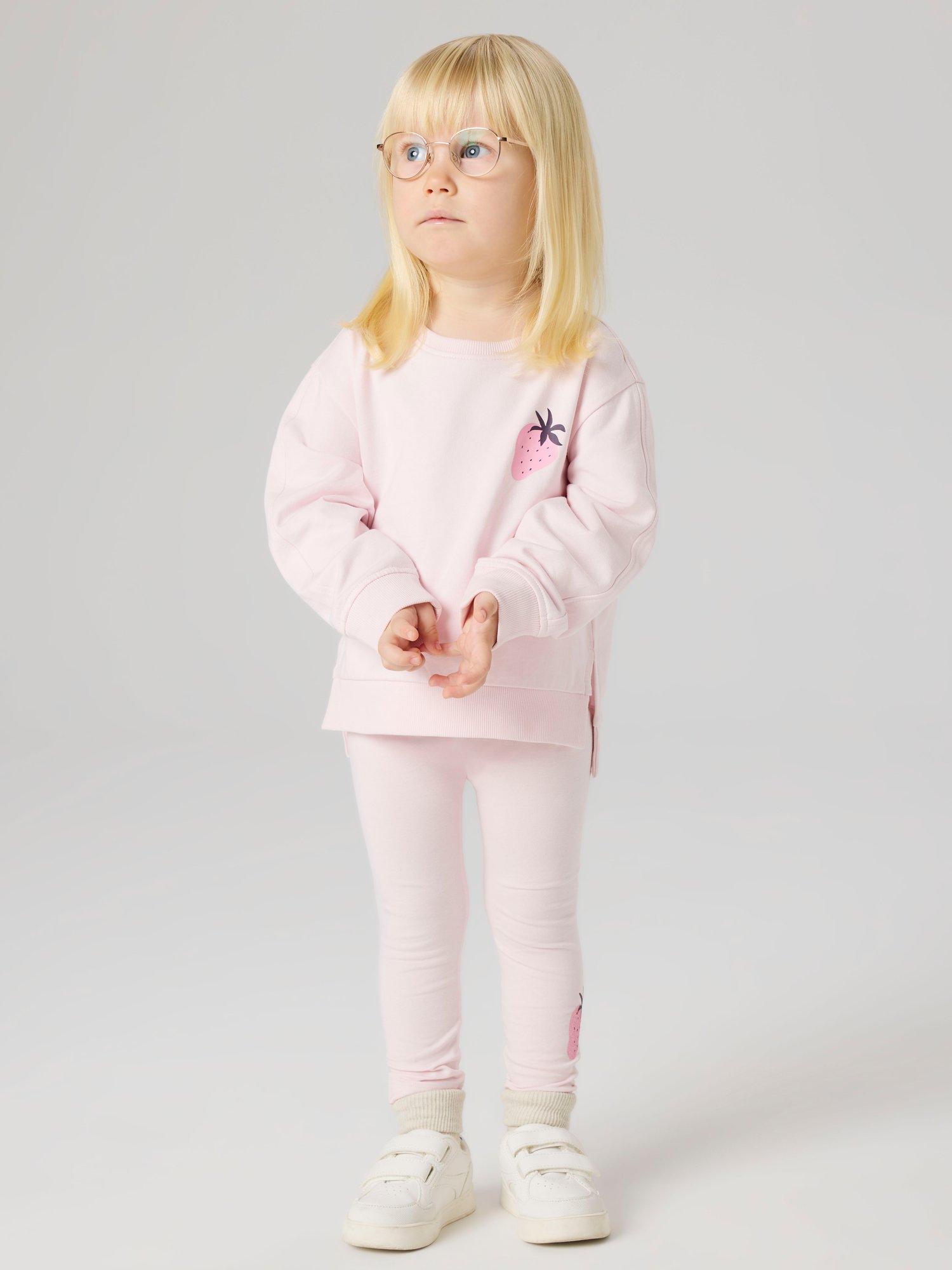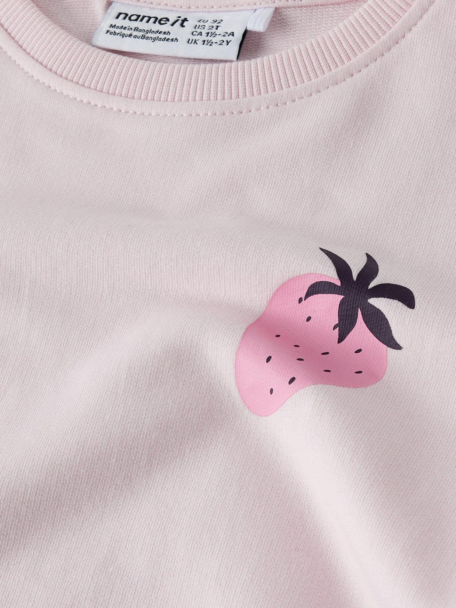 Der Sweatstoff hat eine glatte Oberfläche und weiche Schlaufen innen, die sich angenehm auf der Haut anfühlen. Der klassische Rundhalsausschnitt und die Rippbündchen an Ärmeln und Saum sorgen für sicheren Sitz, ohne einzuengen. Die normale Passform ist leger geschnitten und erlaubt viel Bewegungsfreiheit beim Spielen und Toben.
