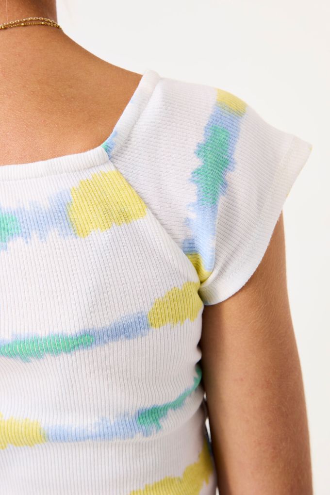 Dieses charmante T-Shirt von Garcia bringt Farbe und Freude in den Alltag junger Mädchen. Hergestellt aus 100% weicher Baumwolle, sorgt es für maximalen Komfort und ist gleichzeitig hautfreundlich. Das auffällige horizontale Streifenmuster in sanften Pastelltönen von Gelb und Grün auf einem weißen Grund macht dieses Shirt zu einem echten Hingucker. Es ist die perfekte Wahl für Mädchen, die sich gerne modisch und gleichzeitig bequem kleiden.