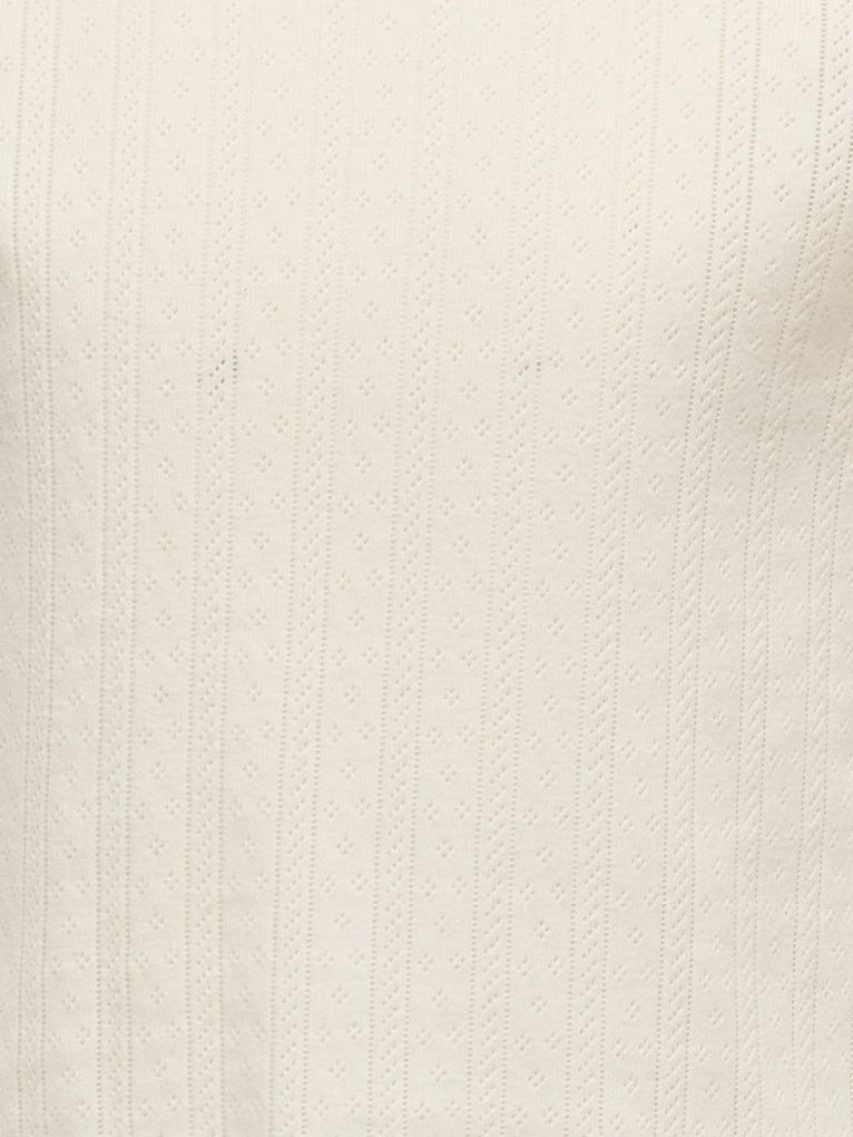 Die feinen Kräuselnähte am Ärmelabschluss und Saum setzen dezente Akzente und unterstreichen den verspielten Stil. Die strukturierte Oberfläche verleiht dem Shirt eine besondere Optik, ohne aufdringlich zu wirken.