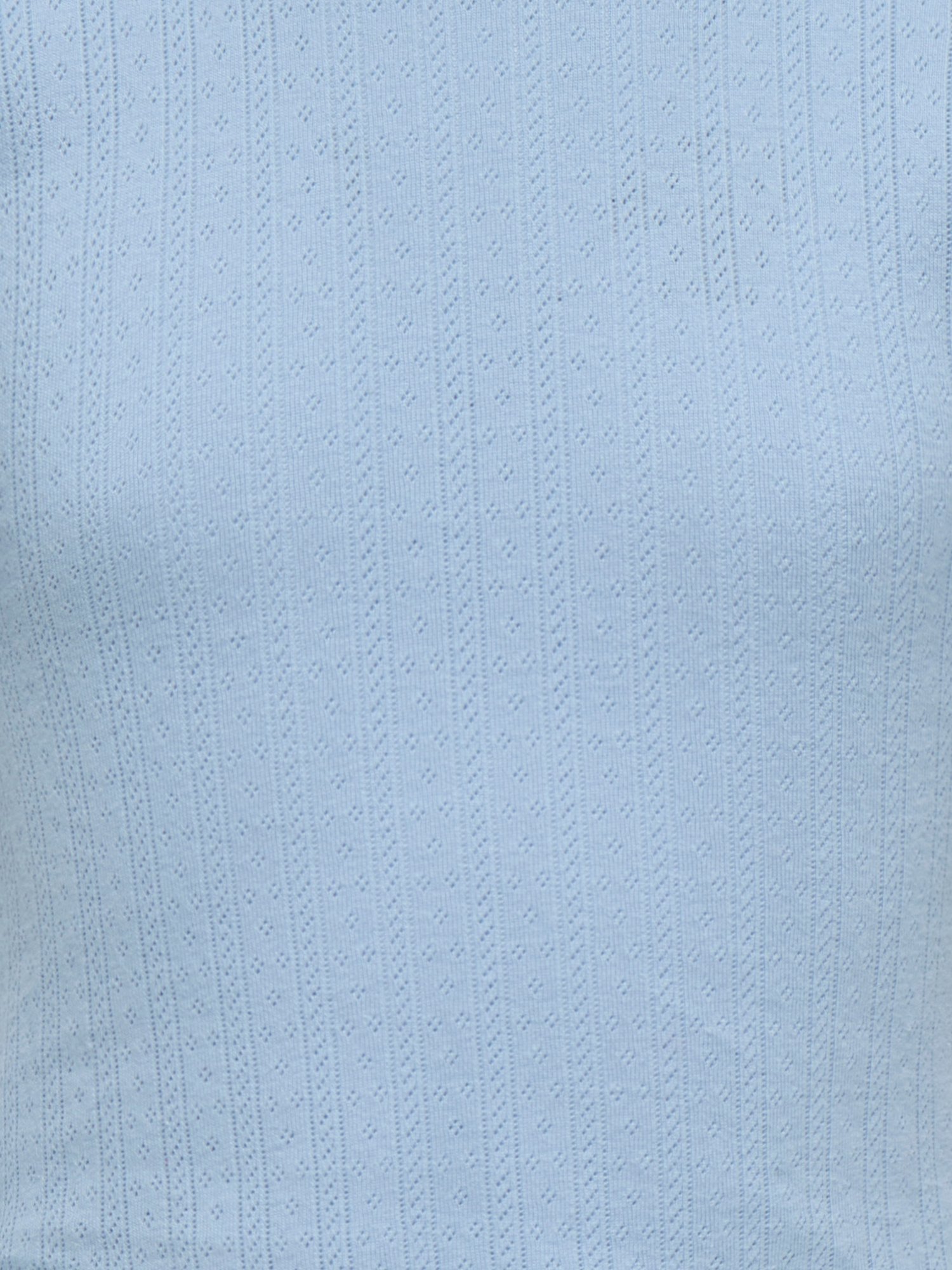 Die feinen Kräuselnähte am Ärmelabschluss und Saum setzen dezente Akzente und unterstreichen den verspielten Stil. Die strukturierte Oberfläche verleiht dem Shirt eine besondere Optik, ohne aufdringlich zu wirken.