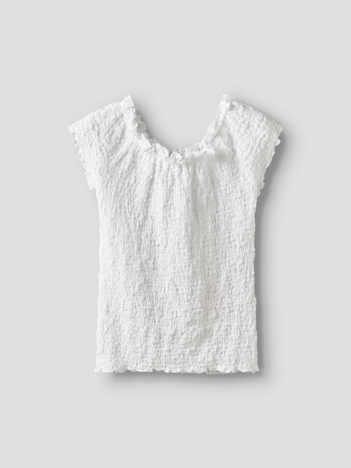Der Strukturjersey liegt weich und leicht auf der Haut und bietet durch seine natürliche Elastizität viel Bewegungsfreiheit. Das Teil ist normal geschnitten und sitzt bequem, ohne einzuengen. Der runde Ausschnitt und die kurzen Ärmel mit schulterfreiem Detail sorgen für ein angenehmes Tragegefühl an wärmeren Tagen.