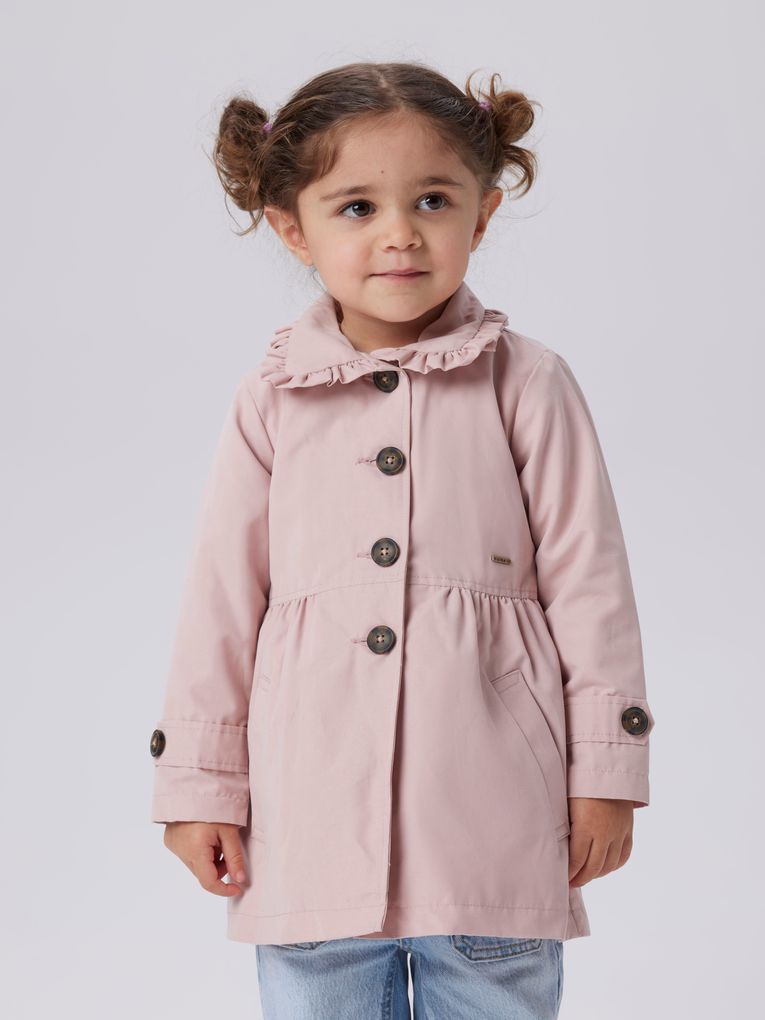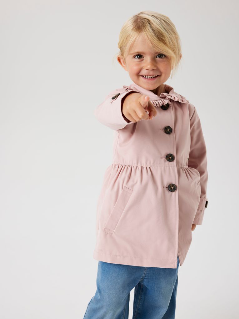 Der NMFMADELIN TRENCH COAT ist in sanftem Rosa und klassischem Beige erhältlich. Beide Farben sind leicht zu kombinieren und bringen Frische in die Garderobe deines Kindes.