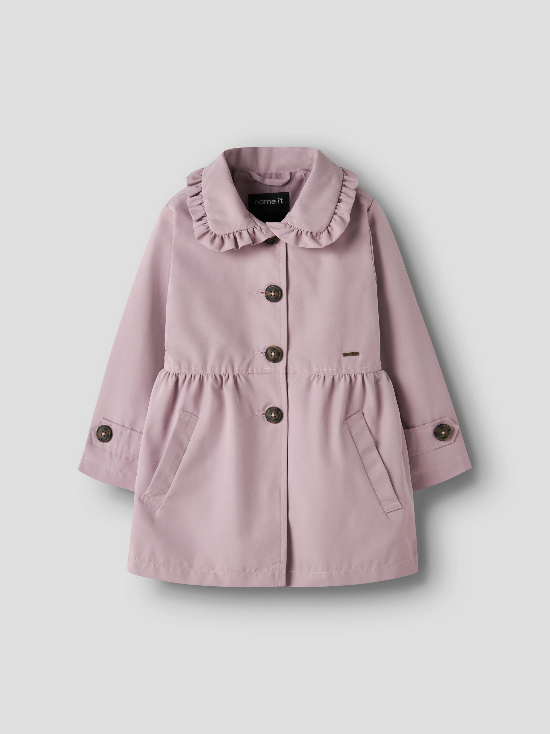 Der NMFMADELIN TRENCH COAT ist in sanftem Rosa und klassischem Beige erhältlich. Beide Farben sind leicht zu kombinieren und bringen Frische in die Garderobe deines Kindes.