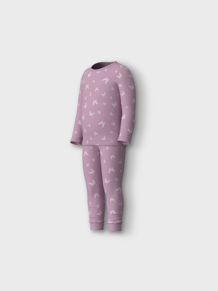 Name it Mädchen Schlafanzug NMFNIGHTSET PINK BUTTERFLY RIB